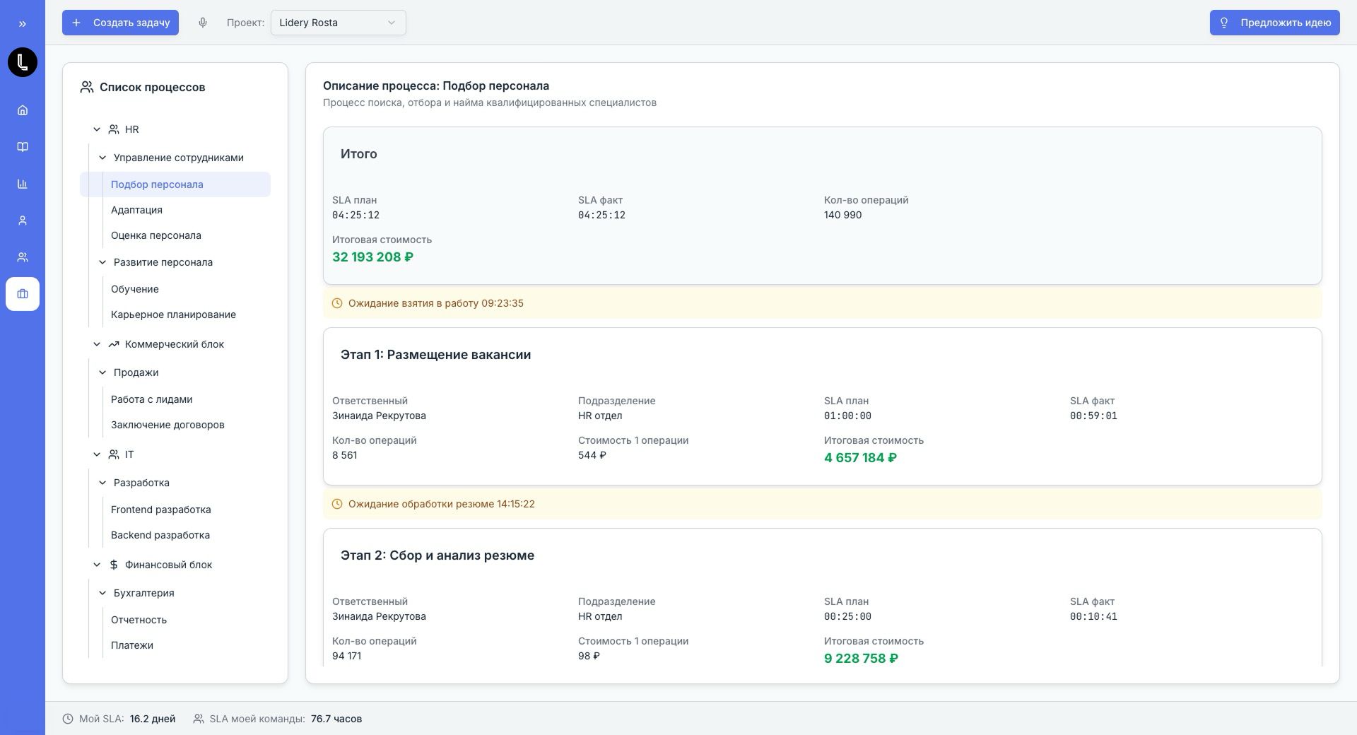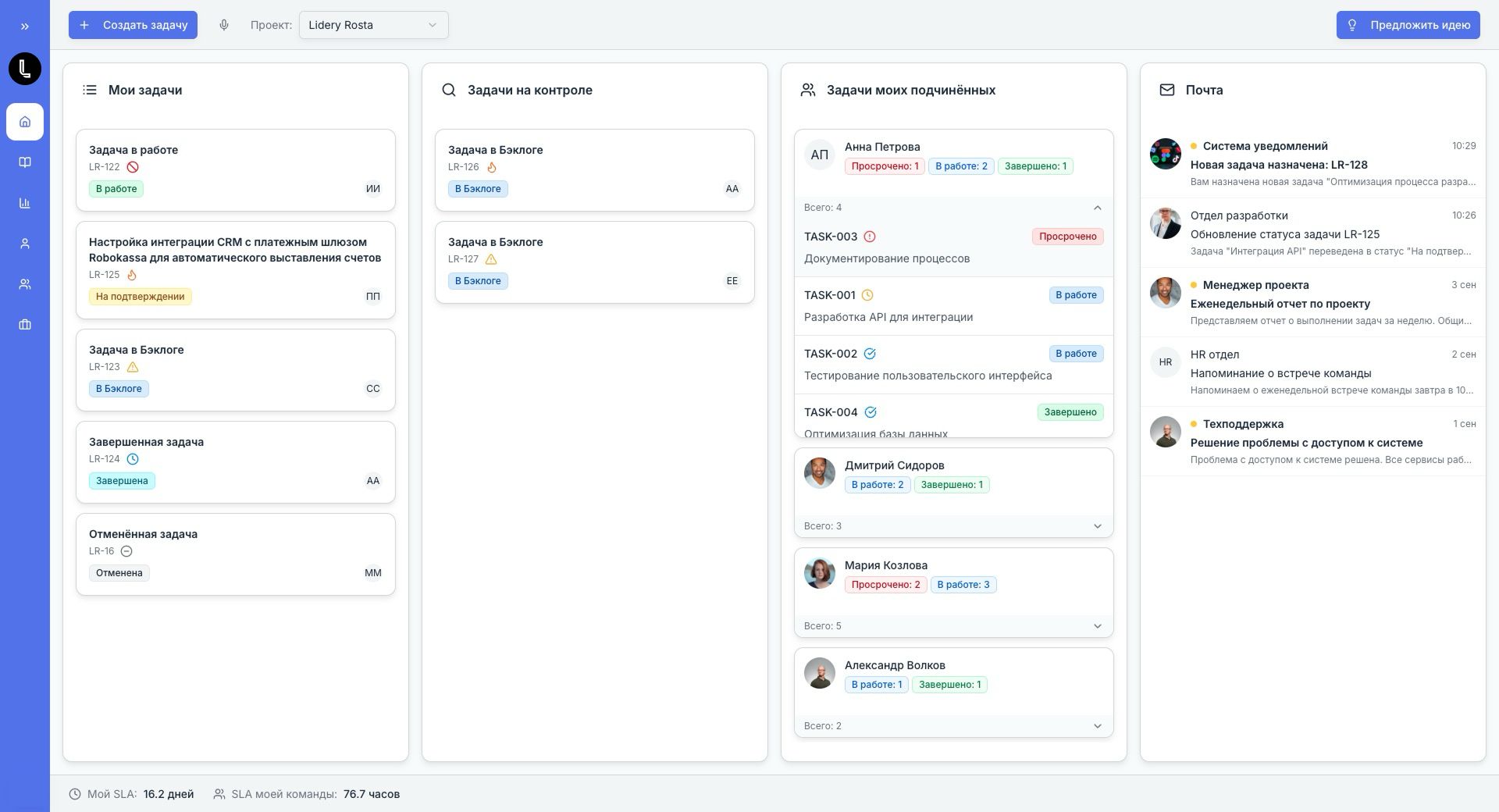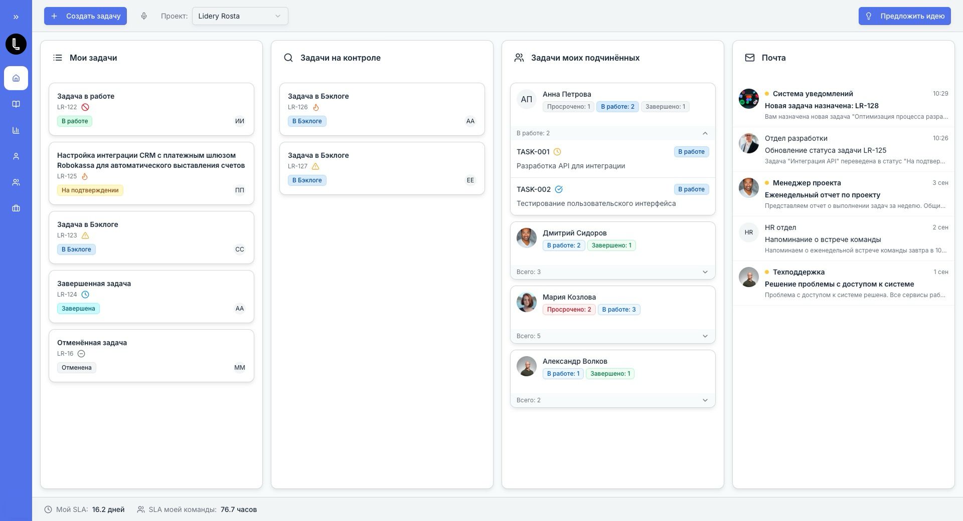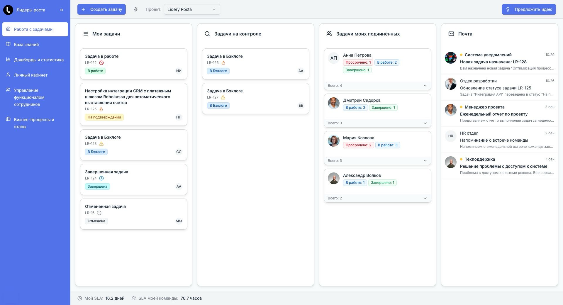 Интерфейс для Лидеры Роста