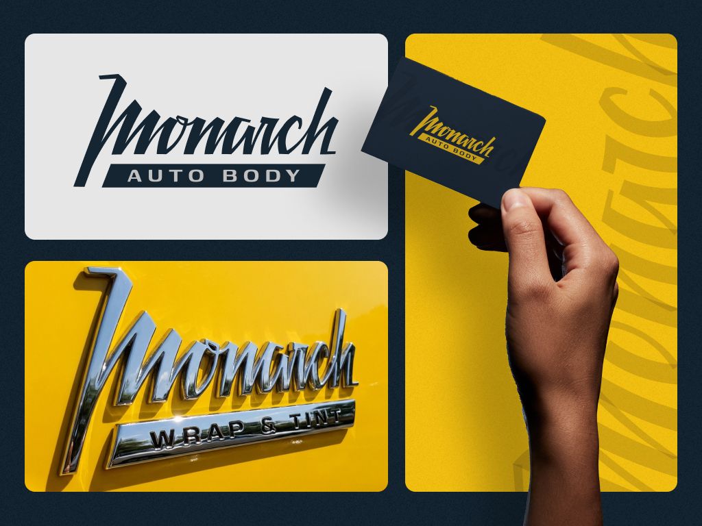 Мы хотели иметь логотип в виде значка и подпись монарх и дескриптор автободи.